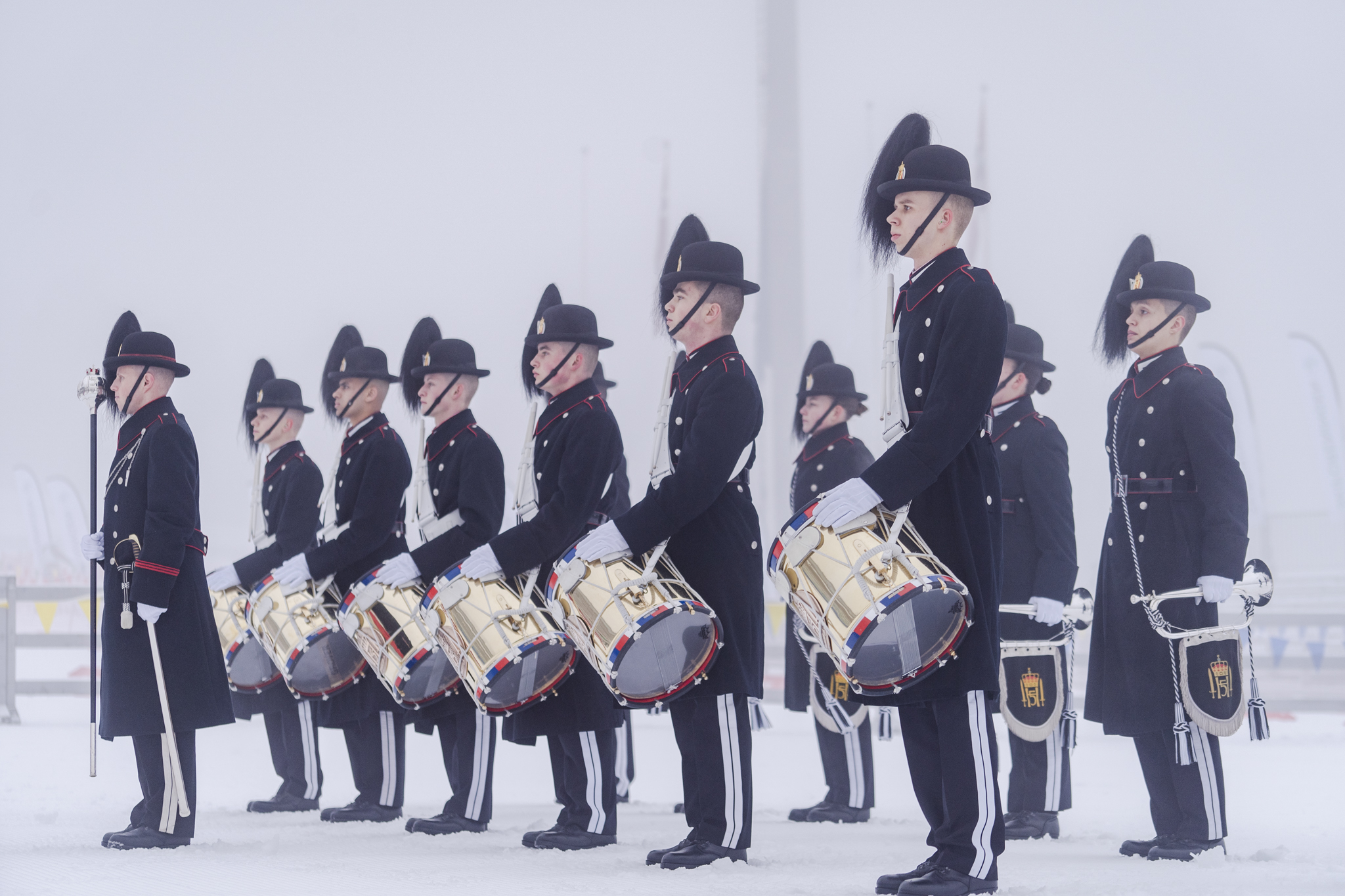 Spiller og heier: Kongens musikere er begeistret med på Barnas Holmenkolldag. Foto: Christian Haukeli
