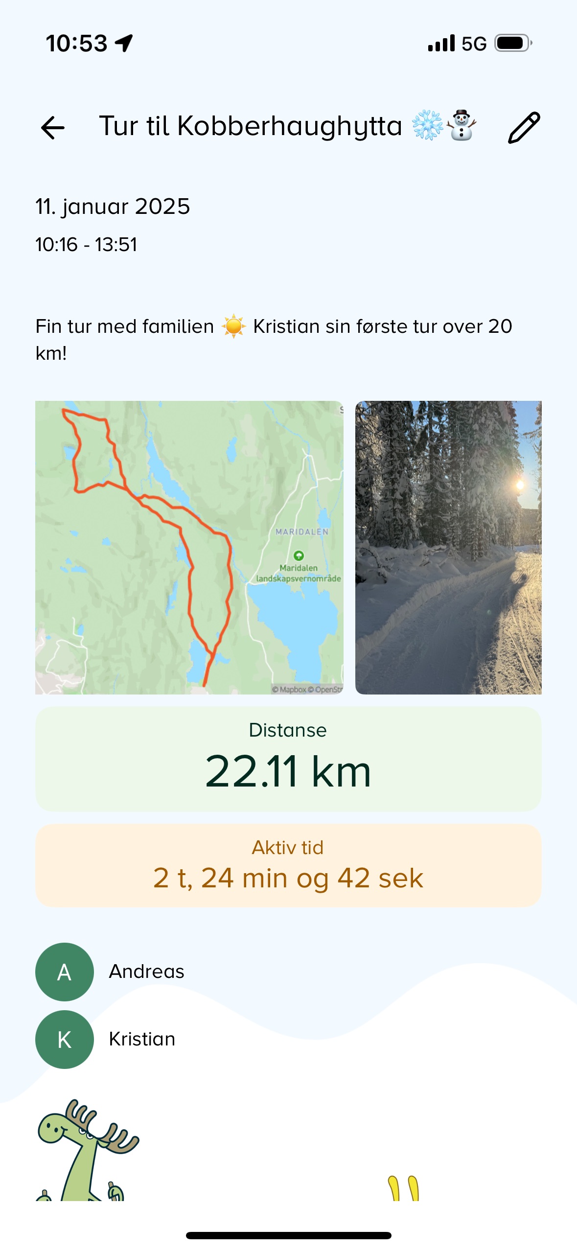 I denne flunkende nye distansekort-appen kan familien logge turene sine, stuebesøkene og legge ved bilder og tekstbeskrivelser til hver tur.