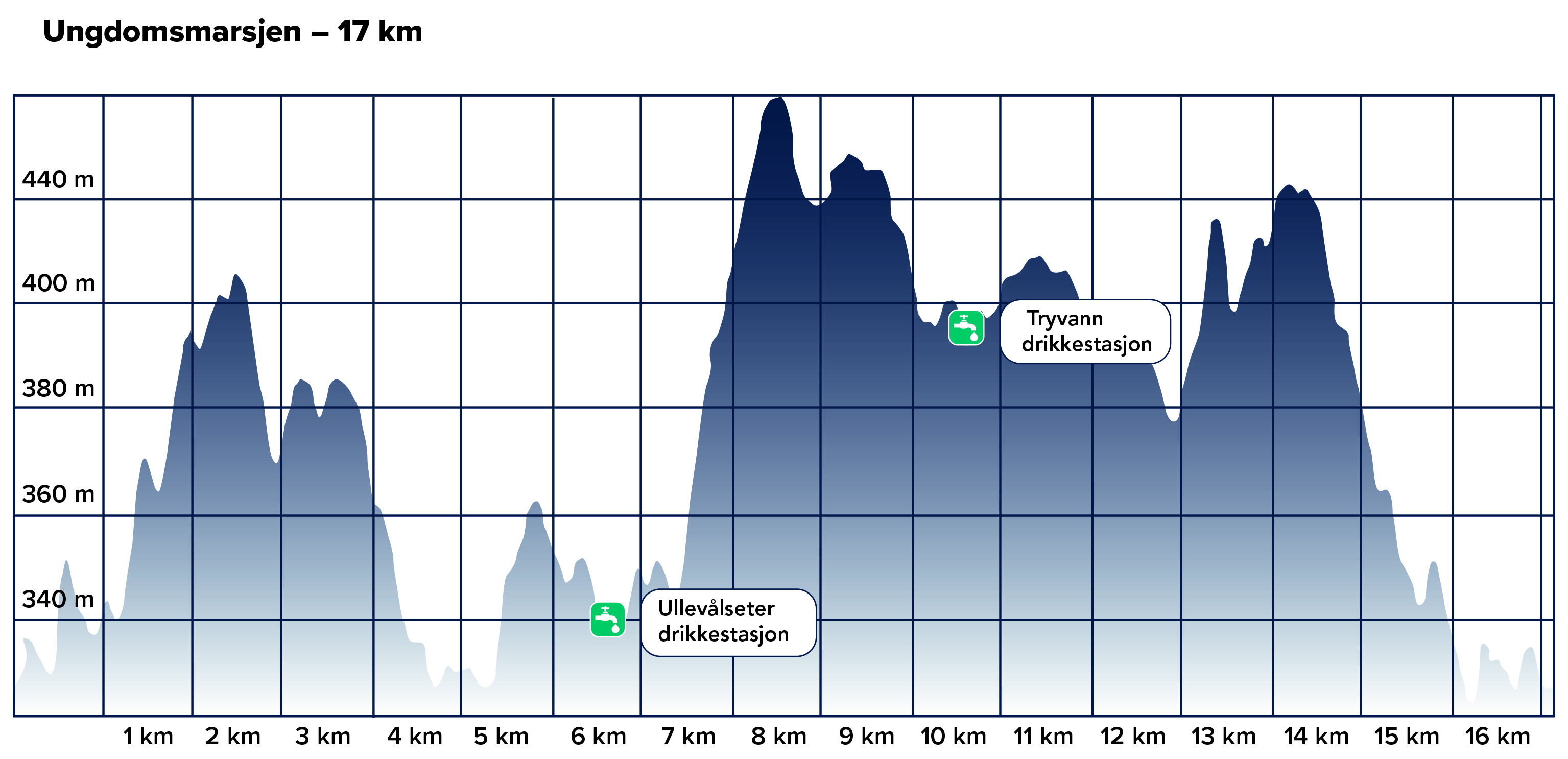Høydeprofil med drikkestasjoner Ungdomsmarsjen.