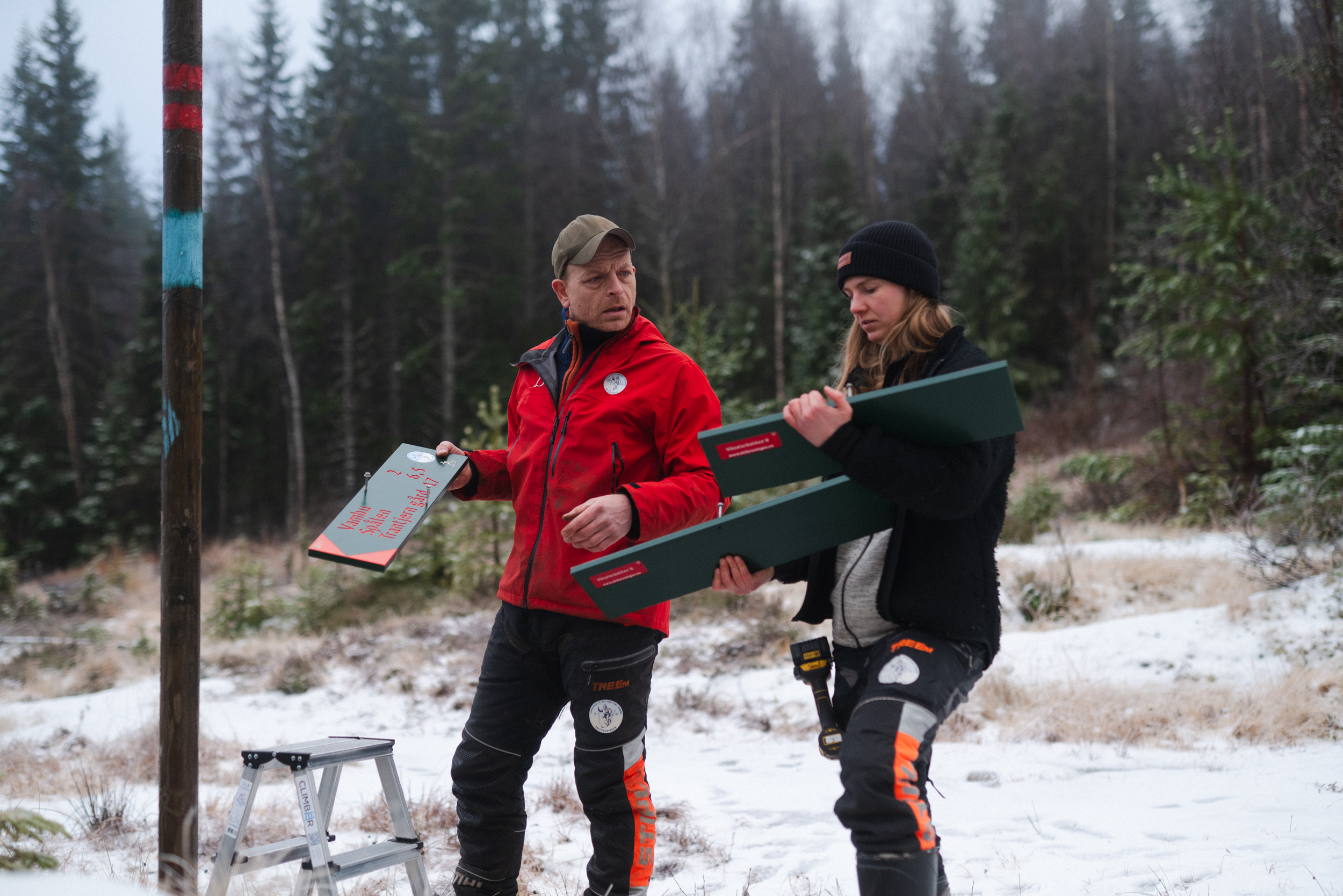 Kjetil er utnevnt til skiltassistent for anledningen, og spøker med at “mistenkelig mange” skilt viser vei til hennes del av Marka, der Trantjern gård snart blir den nye markastua for skientusiaster.