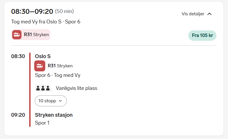 De som skal ta toget til Stryken bør ta 8.30-avgangen fra Oslo S.