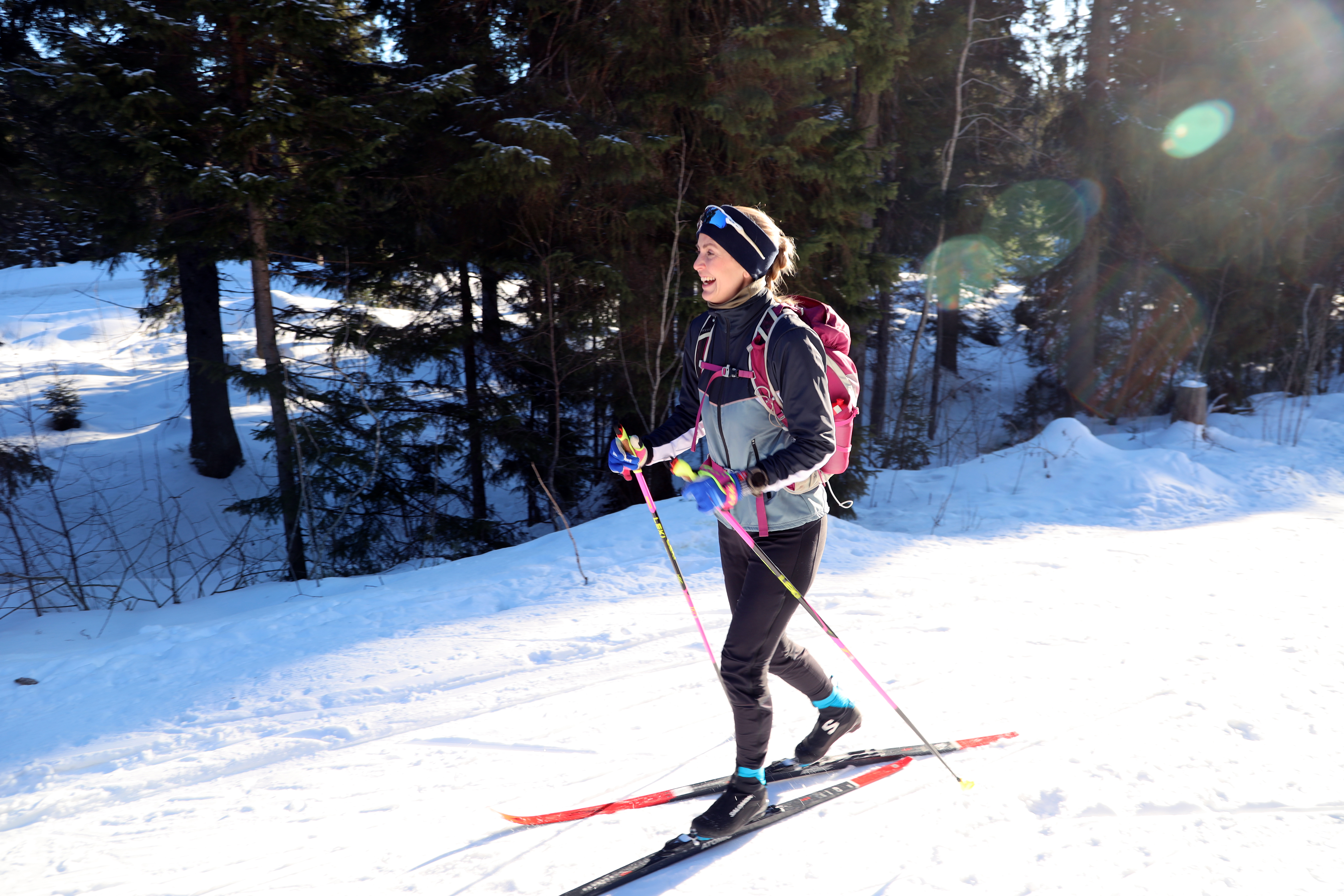 – Ja, hva er det? Det er utrolig deilig synes jeg da. Deilig å bevege hele kroppen. Deilig å være ute på vinteren. Jeg elsker følelsen av å være varm ute når det er kaldt. Når du får kald vind mot ansiktet, men du er varm i kroppen. Du får pausene i nedoverbakkene. Det er gøy å gå på ski!