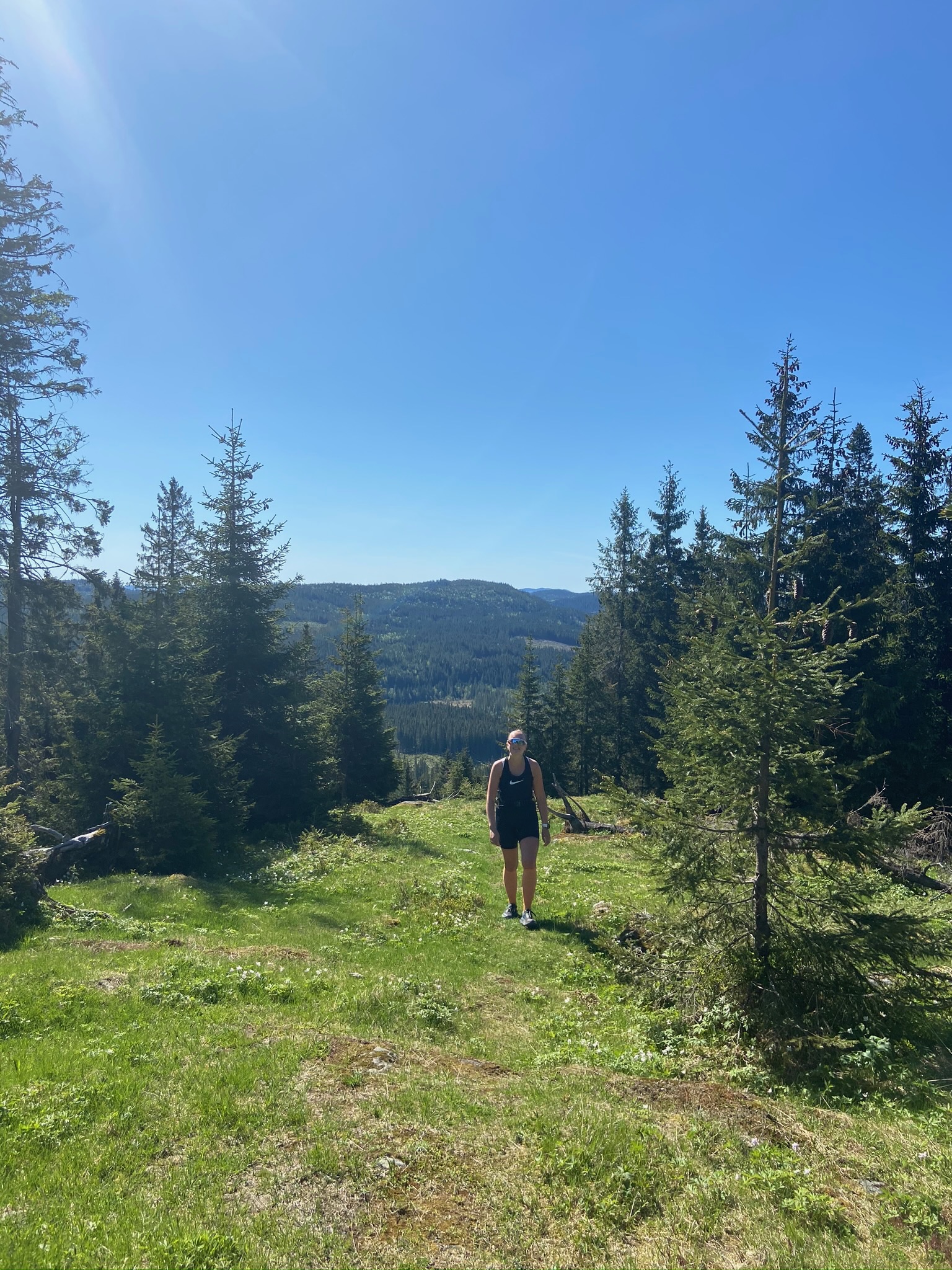 Helgehaugen er høy og mørk, men uten særlig utsikt. Rett før derimot, ser du langt! Foto: Kristine Grønlund