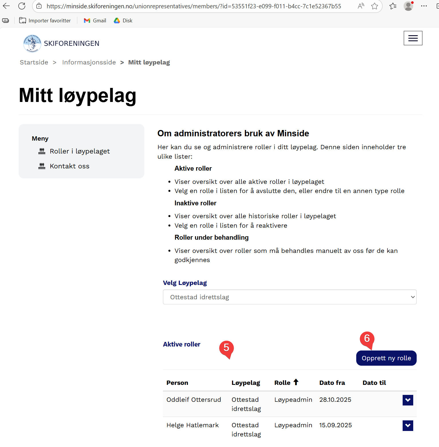 - Du får oversikt over aktive roller i ditt løypelag / din organisasjon