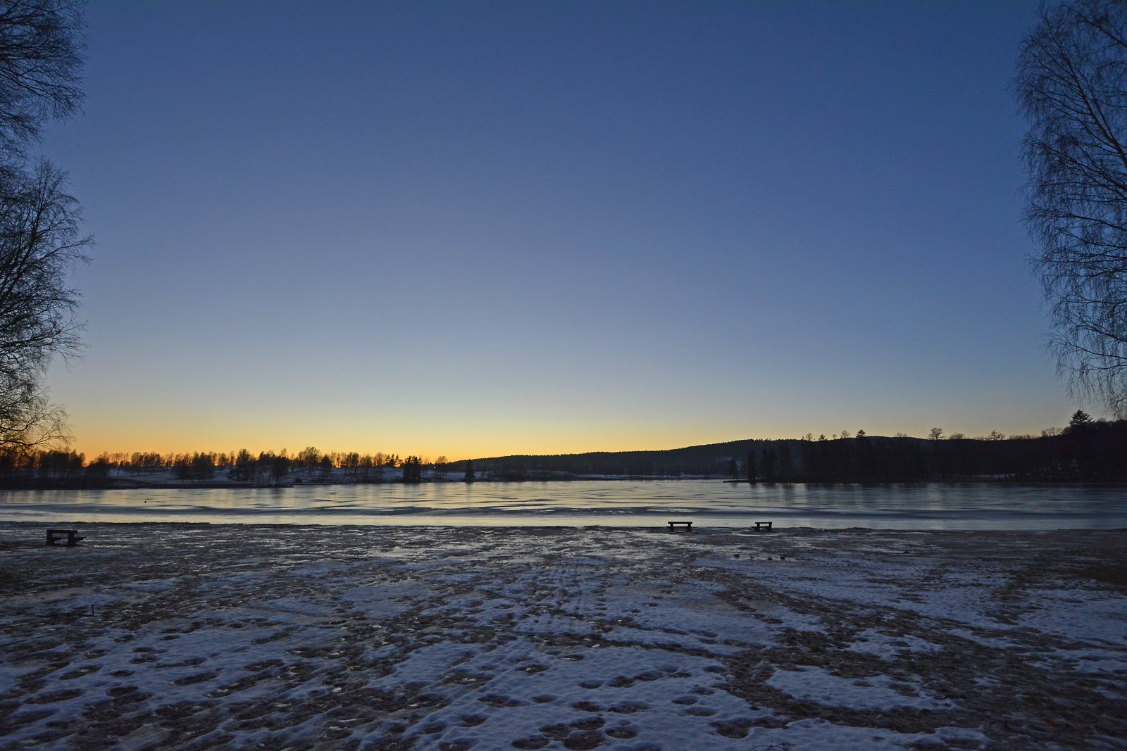 Skiltet med «Badeplass» har ikke tatt juleferie. Til ære for skiltet var det fortsatt litt åpent vann omgitt av frostrøyk. Ingen badegjester, men en milsluker på ski med Birken i blikket, der han haster av gårde rundt vannet langs strandkanten for å få sin dose med mengdetrening.