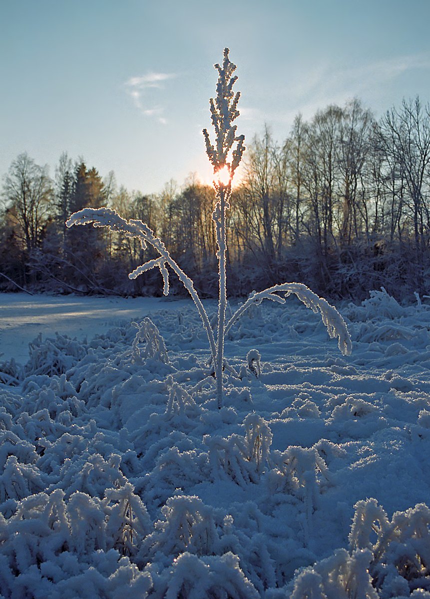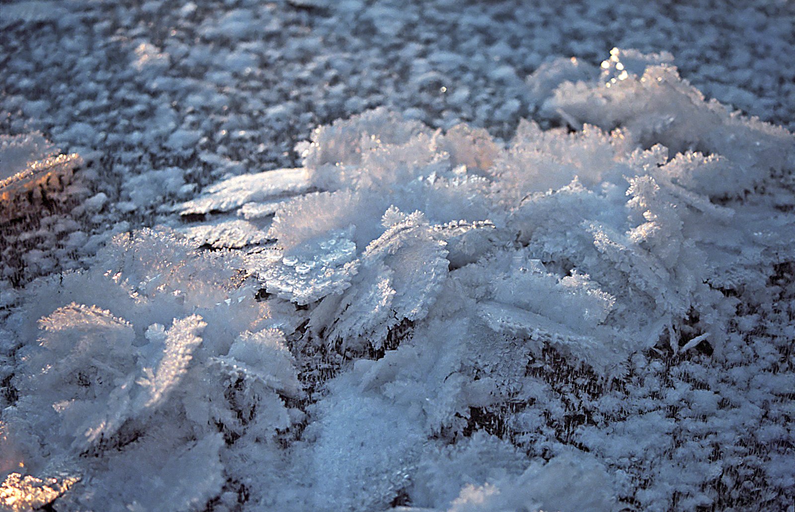 RIMBLAD: Der hvor det er åpent vann har det dannet seg store flak av iskrystaller i den fuktige luften rundt åpningen. Dekorativt og kaldt, og med svinnende sollys er fokusering og dybdeskarphet med kalde fingre en utfordring.
