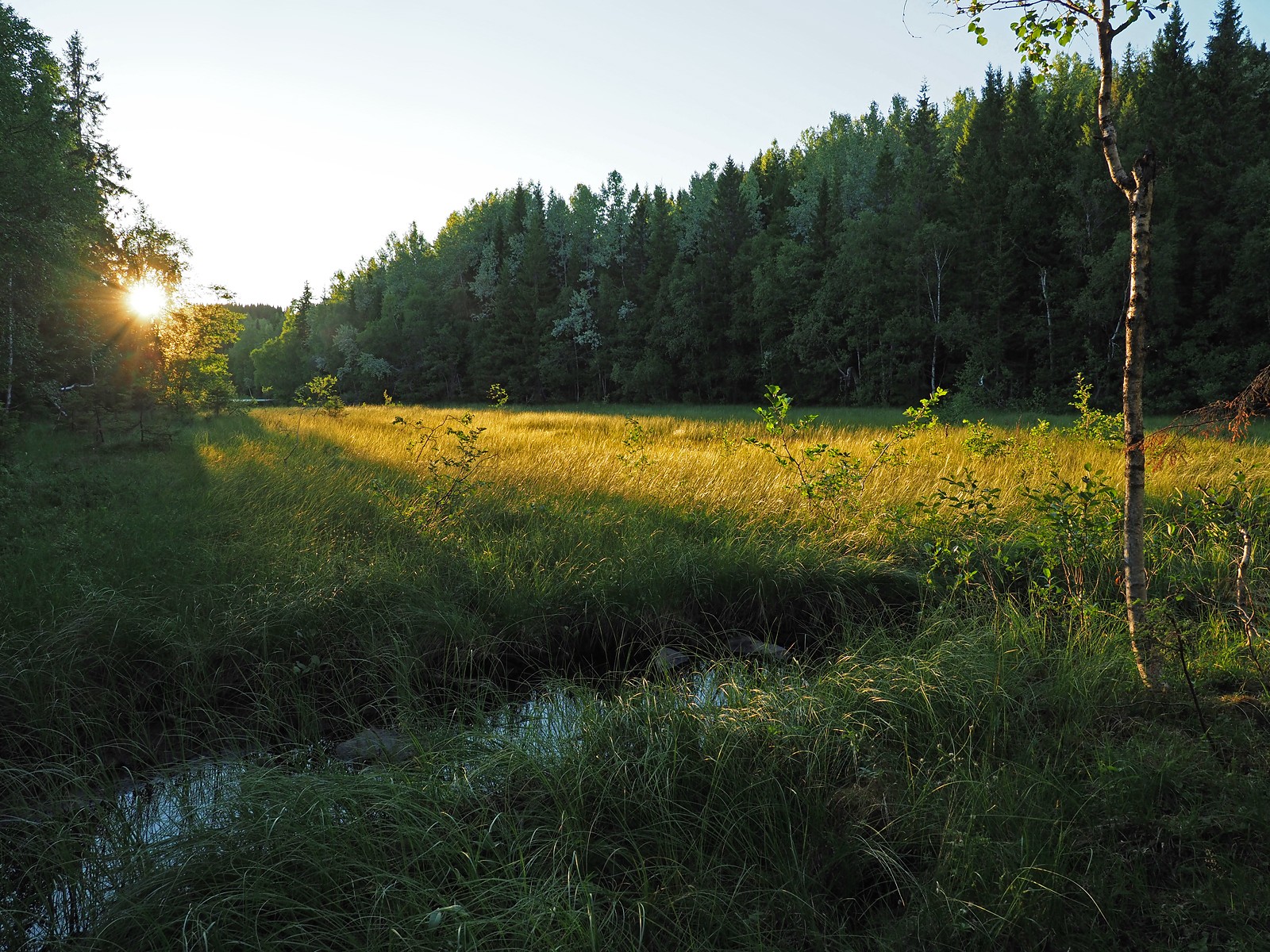 FLYTETORV: Svartvann er Urselvas hovedkilde og utspring. Hele vika øst i vannet er dekket av flytetorv uten noe tydelig elveleie, men i skogkanten åpner det seg nærmest en kanal i torva. Den fortsetter i ei grunn renne i skogbunnen uten spor etter noen form for demning som kunne regulert vannføringen i elva.