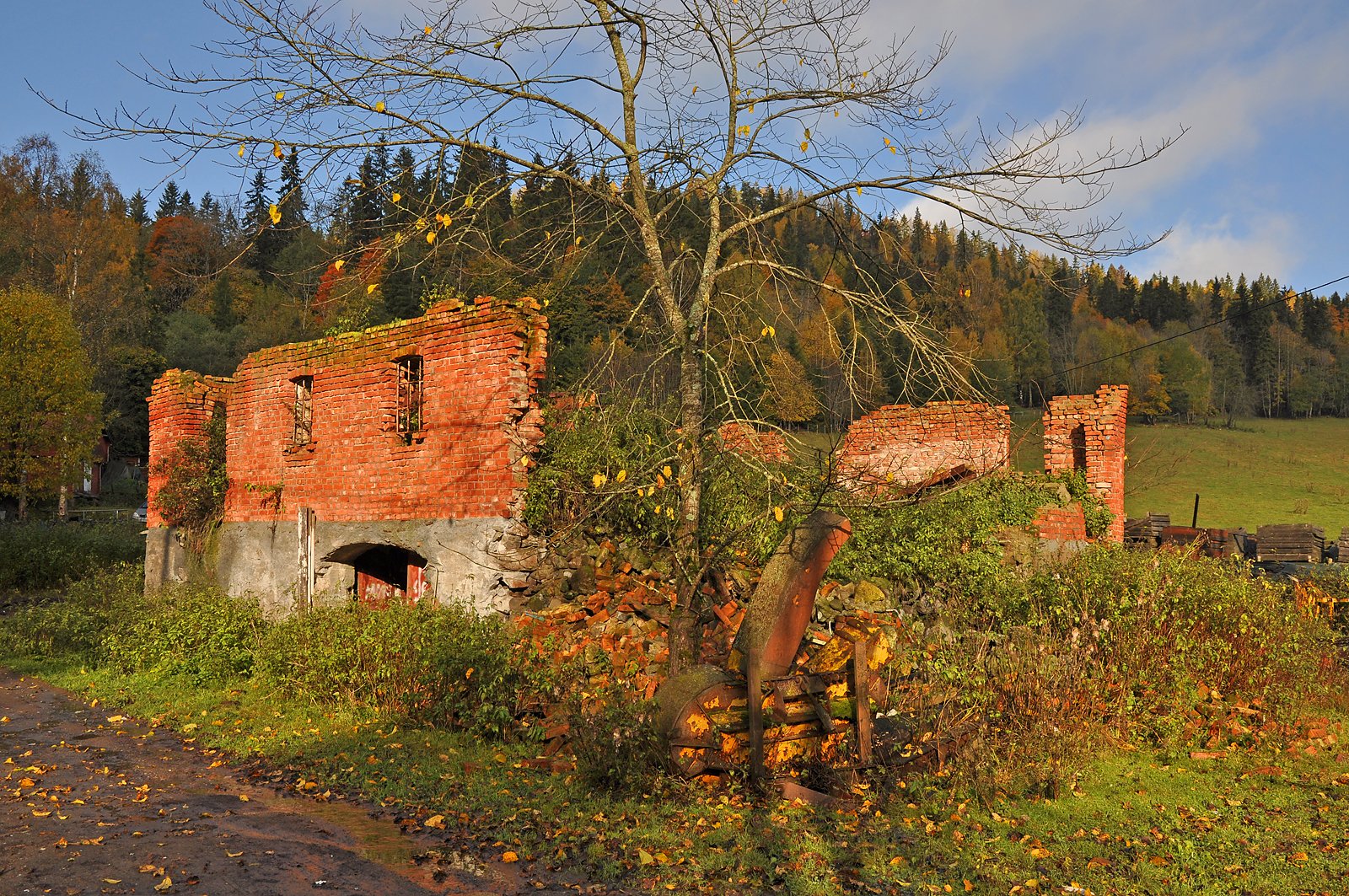 Erling Persbråten kunne fortelle at dette er restene av flomsaga som var i bruk i perioden 1943-48. Under krigen var det mangel på alt, og saga ble rasket sammen av utrangerte deler fra andre lokale sager. Med kløkt og tålmodighet ble deler som ikke passet sammen likevel føyd sammen til noe som fungerte bra nok. Det som står igjen nå, er selve drviverket – et overfallshjul med diameter på mer enn 1,5 meter og bredde 0,8 meter. Persbråten var selv med på å bygge saga, og var bakgutt da saga var i drift. Men naturen er i ferd med å ta tilbake dette kulturminnet også. Granskauen kryper stadig tettere, og de restene av treverk i vannhjulet som var der for ti år siden, er nå helt borte. Det er ingen sikre spor etter fangdemningen eller vannrenna til saga.