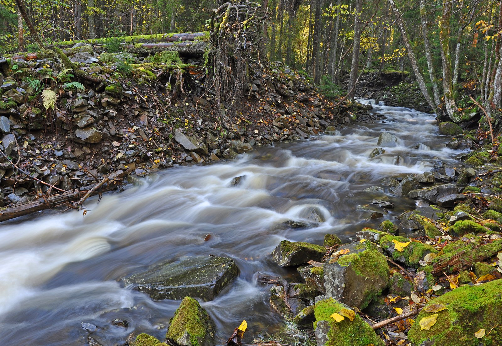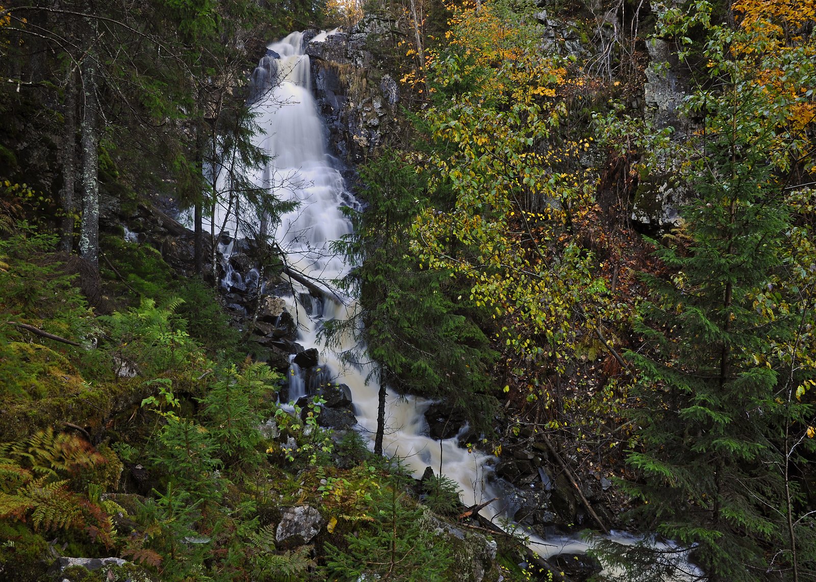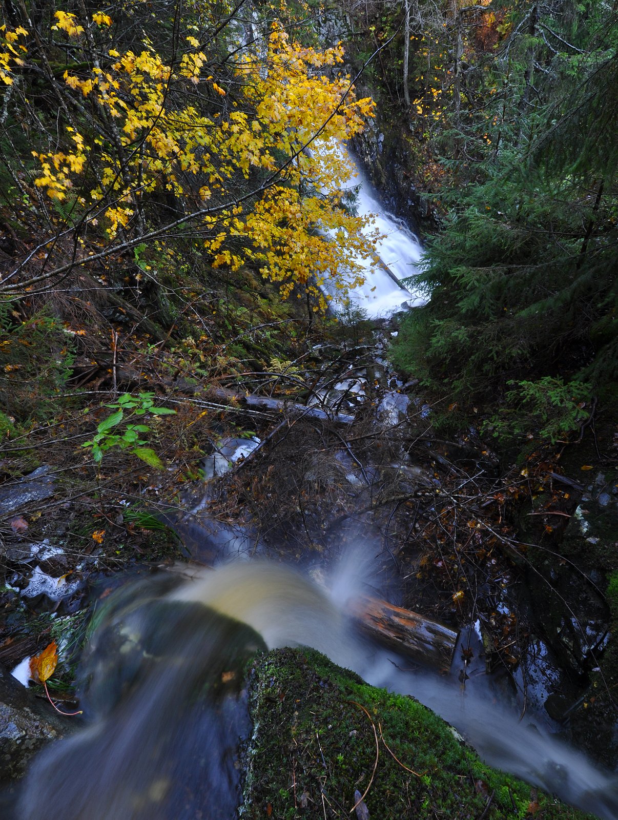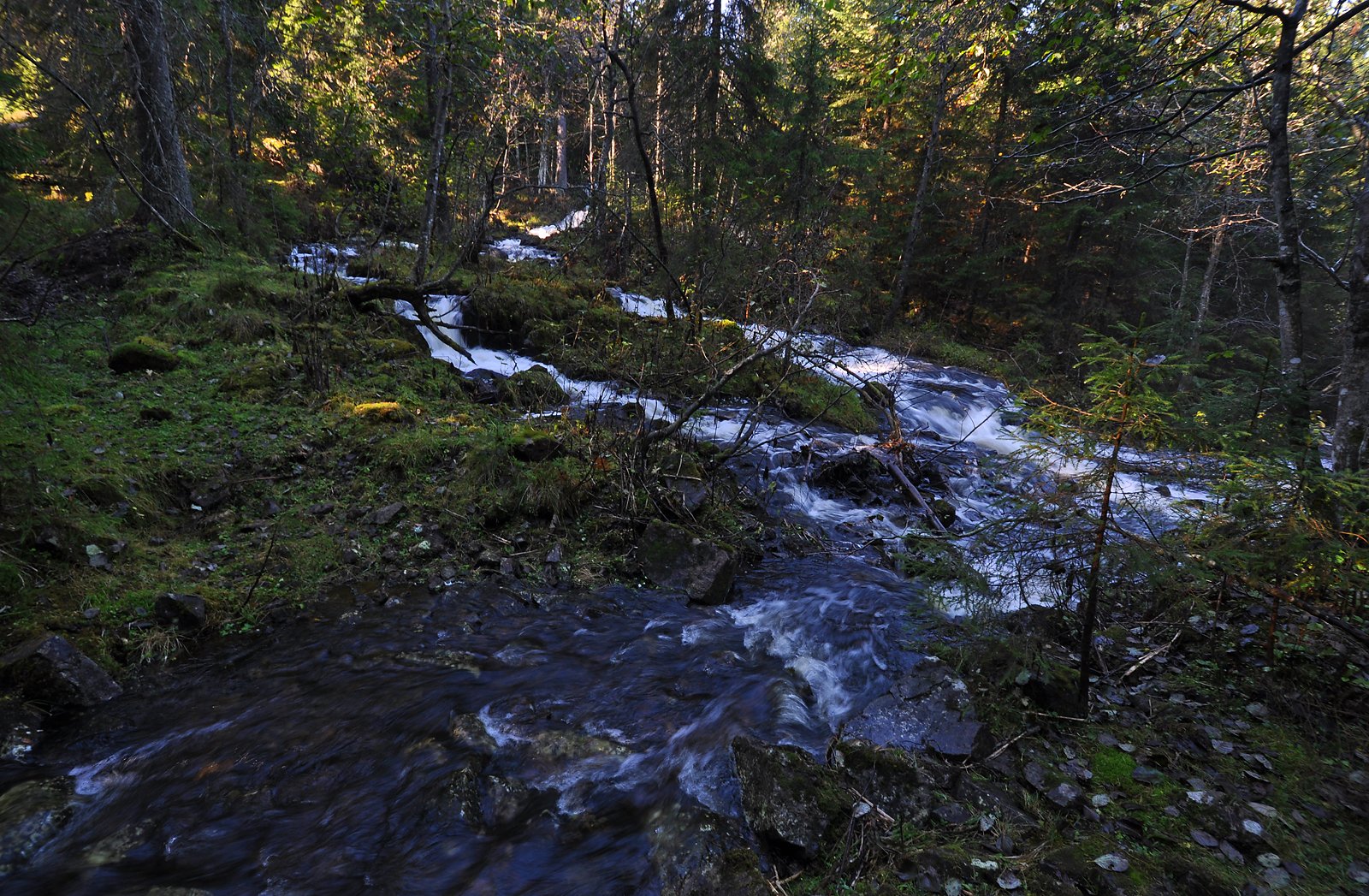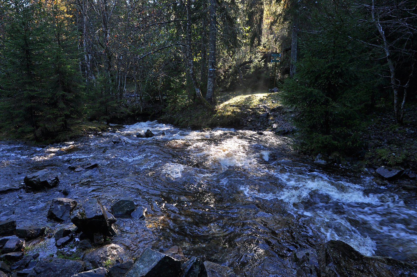 HØSTIDYLL: Ovenfor saga går elva i ei trang renne. Stryk og fosser som denne gjør det verdt å ta avstikkere fra blåstien og ned til elveleiet.