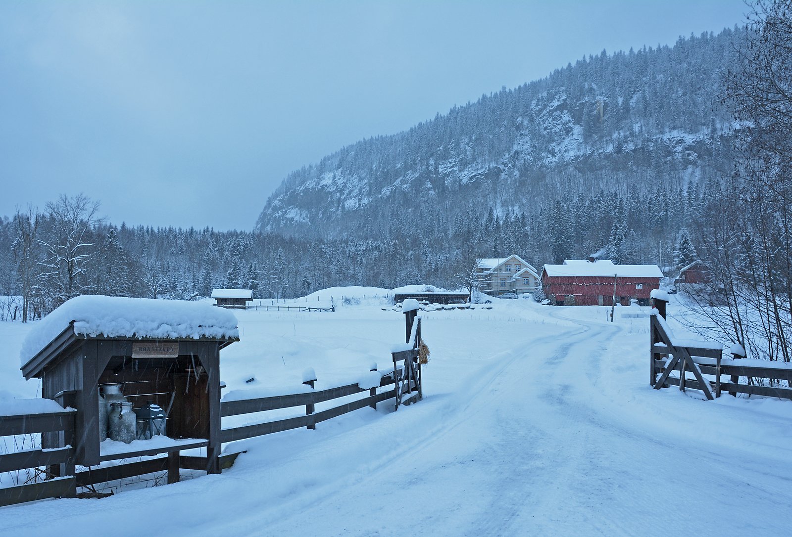 MELKESPANN: I innkjørselen til Rønningen gård i Ursdalen står gammeldagse melkespann på melkerampen og venter på at melkebilen skal komme. Sikkert forgjeves, selv om gården holder vinterkyr. Men under min oppvekst på landet var dette et vanlig syn, selv om melkerampene da gjerne var mer skrøpelige.